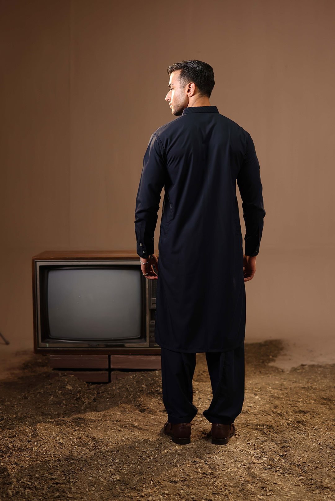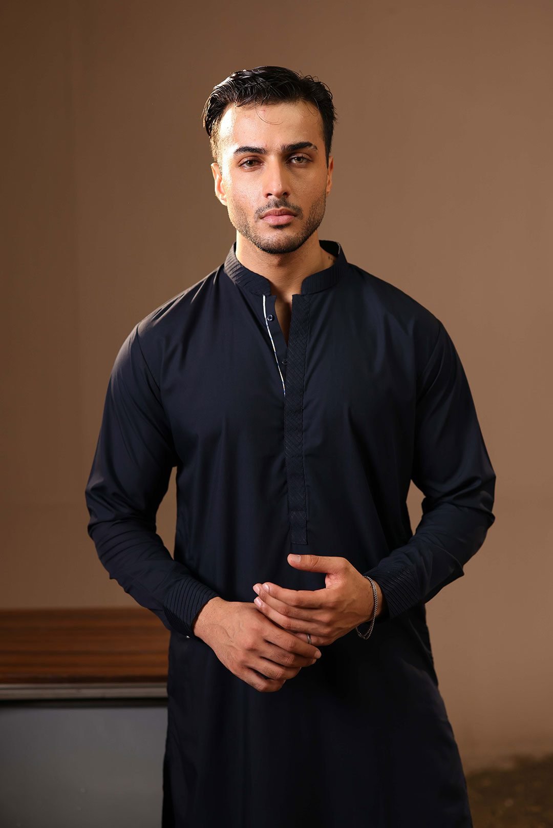 Upgrade your look with this classic navy blue kameez shalwar, featuring neat stitching and pleated detailing for added style. Designed for all-day comfort, it’s a perfect choice for traditional gatherings with a modern edge