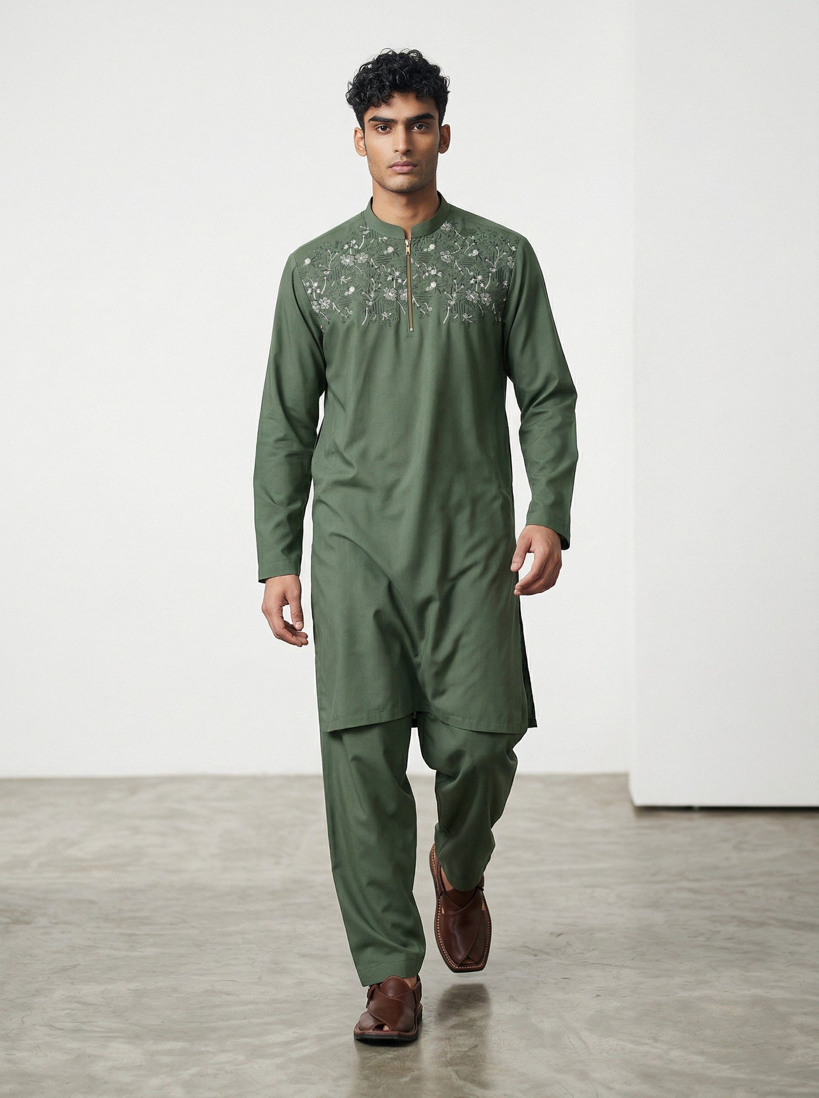 This timeless embroided suit features neat pleats stitching and subtle details. Designed for comfort and style, it’s ideal for casual and light formal wear