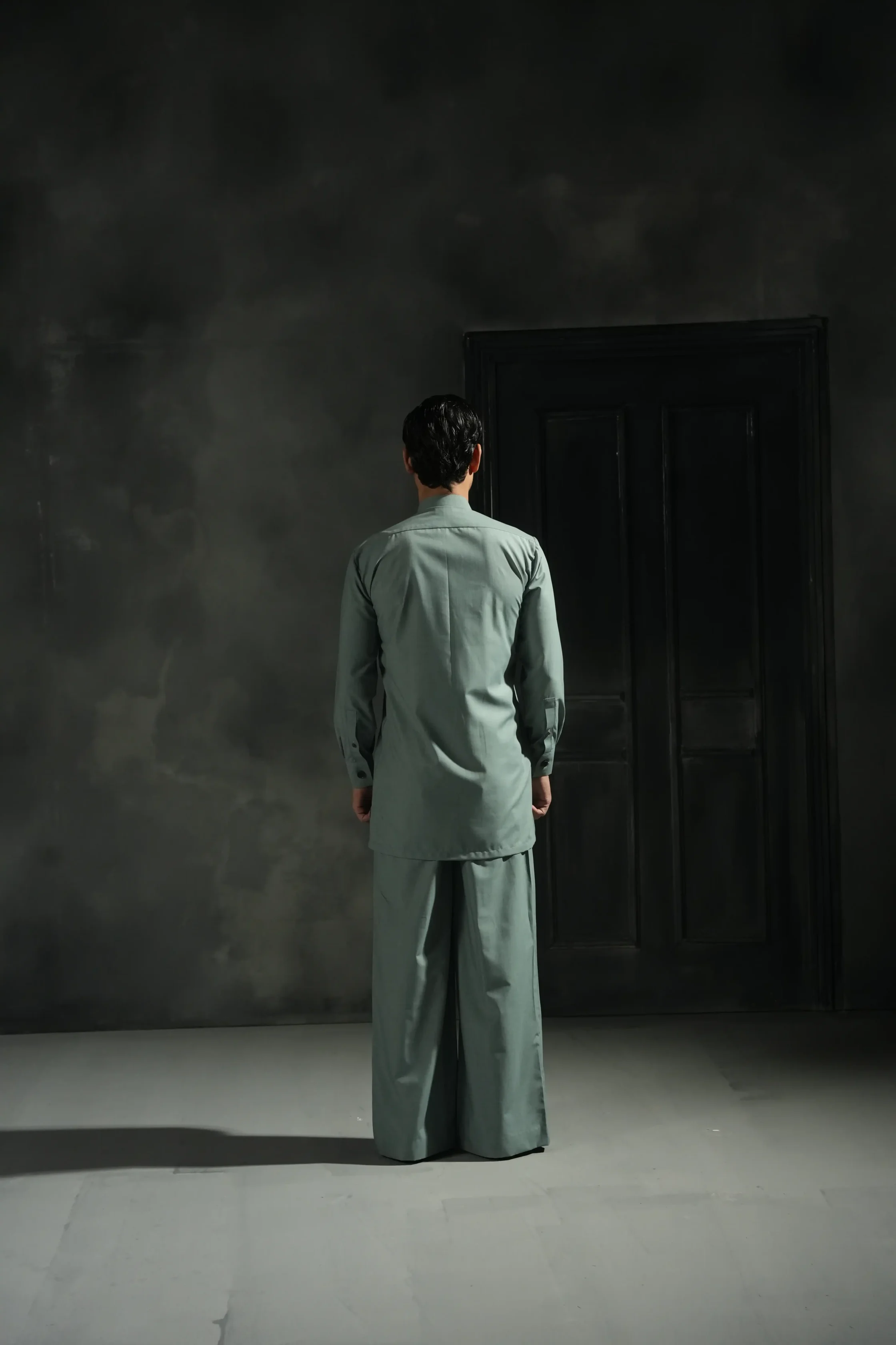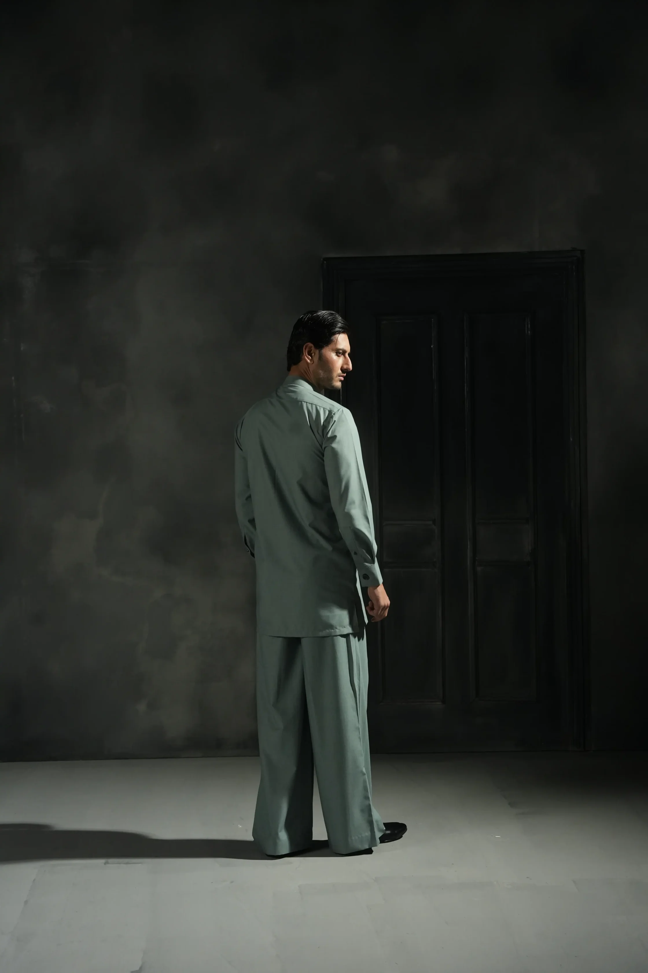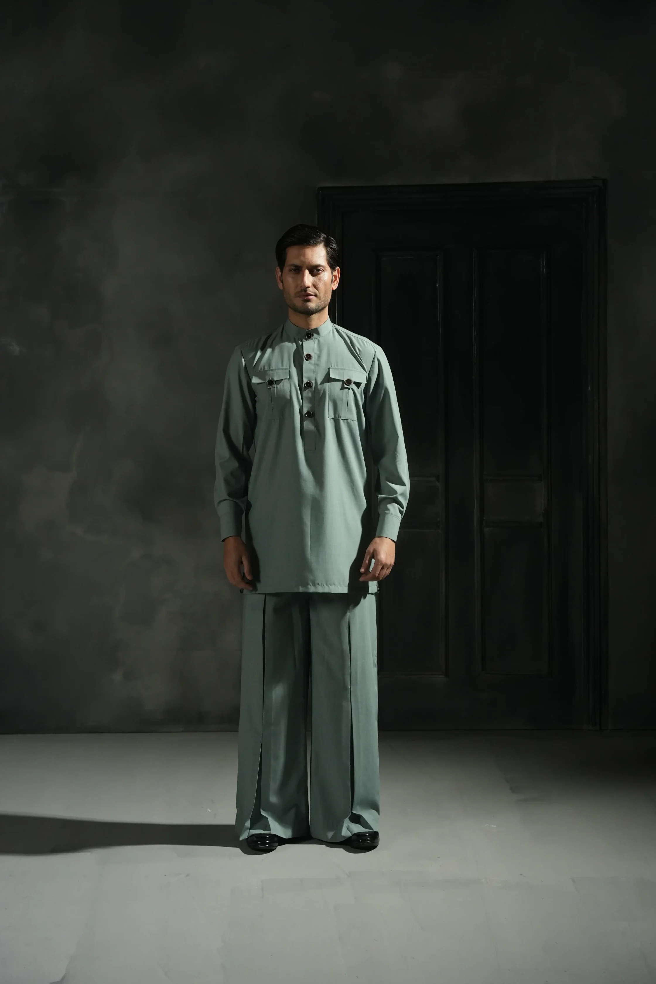 This sage co-ord never loses its shape, giving you a clean, powerful look and a comfortable wide-leg fit. It is the best choice for anyone who wants to stand out without worrying about their outfit looking messy.